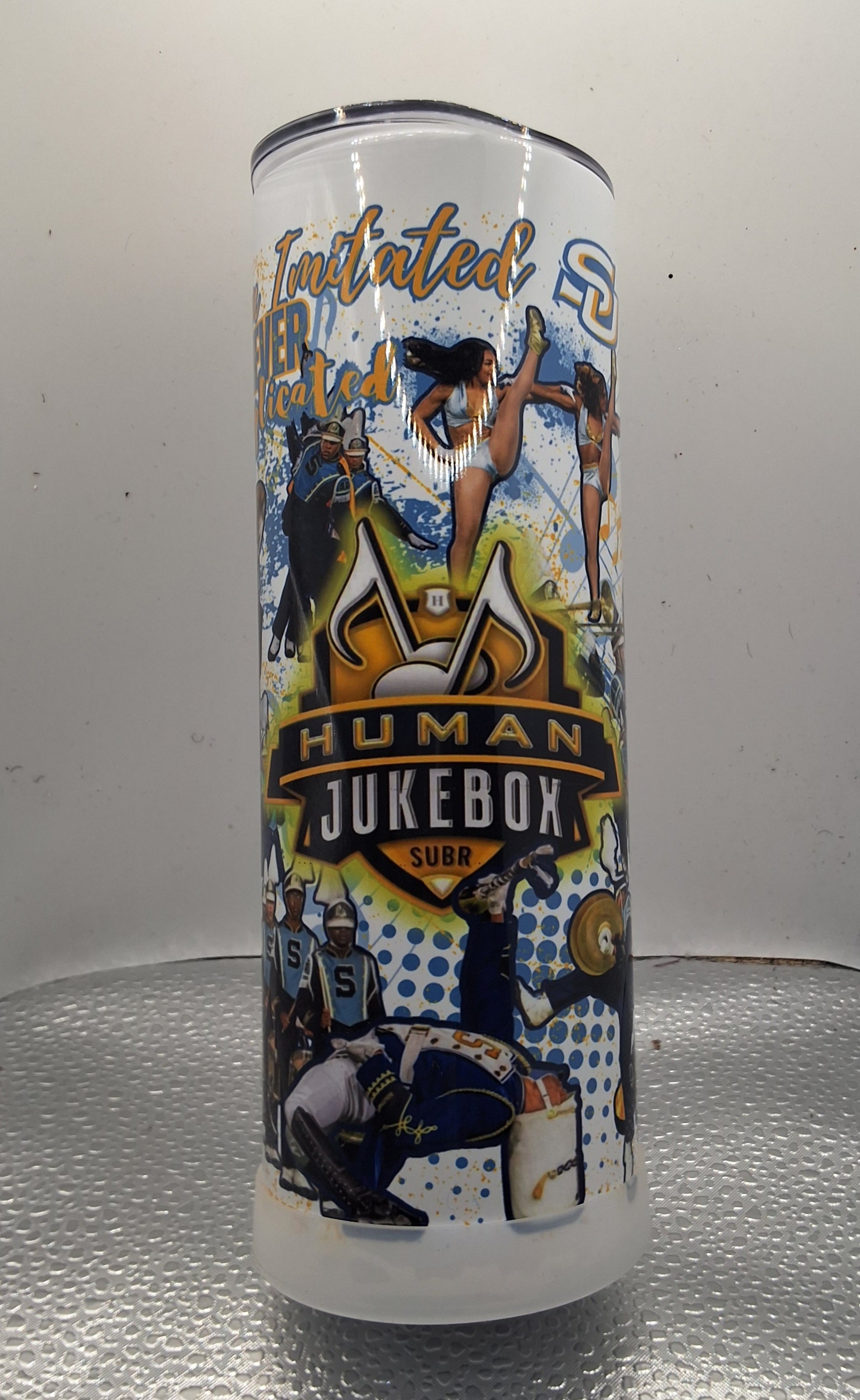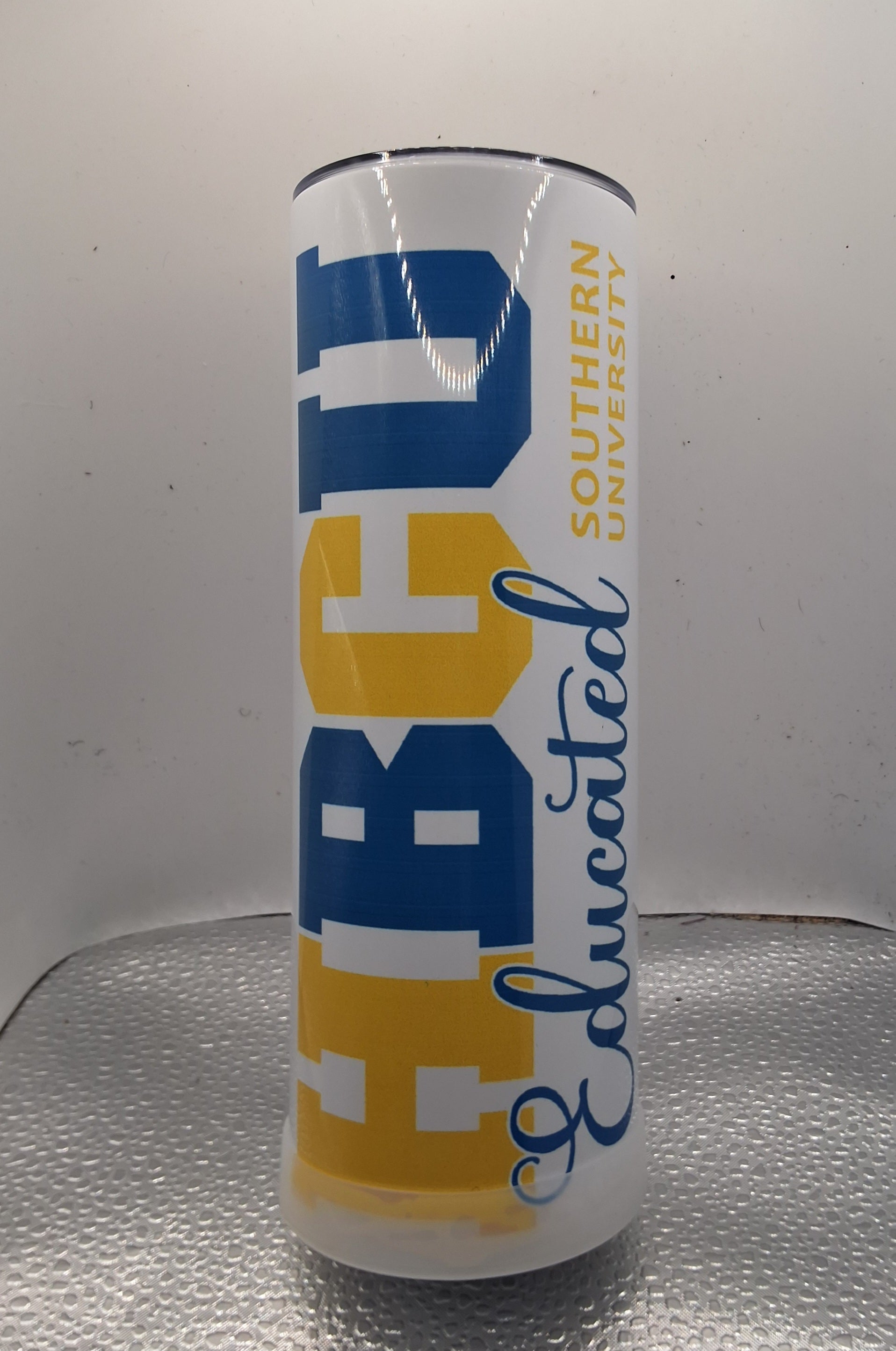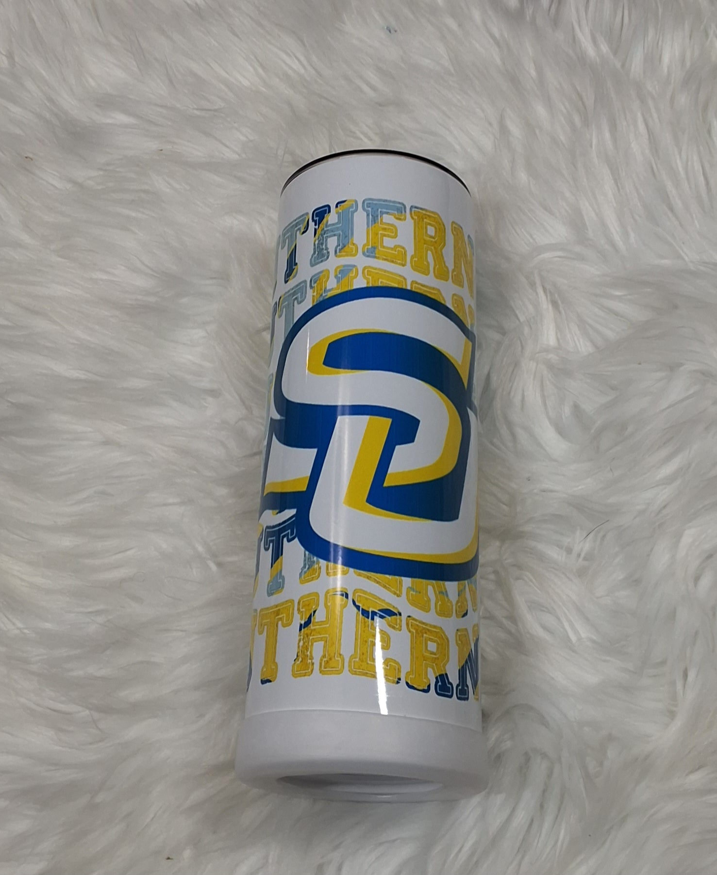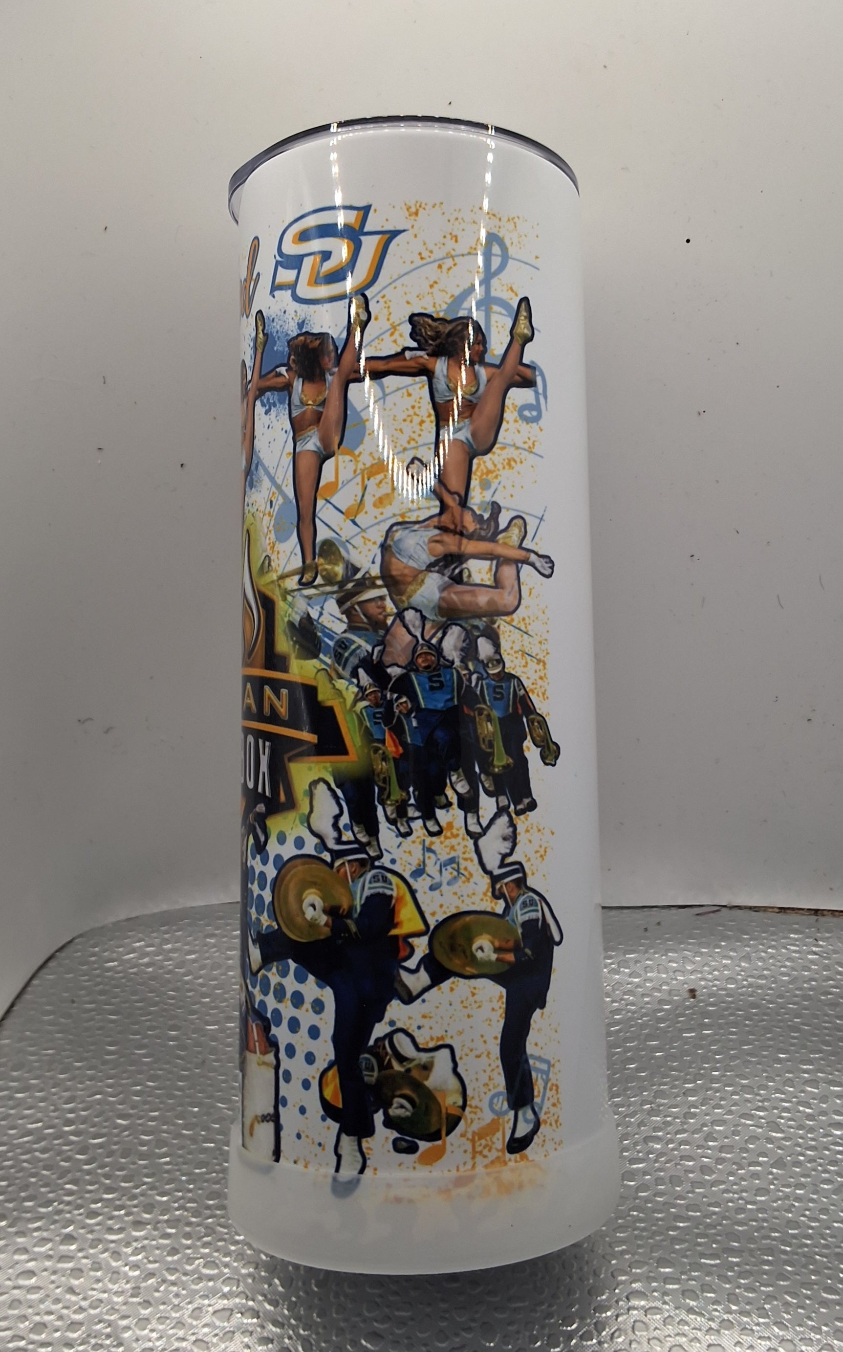 20oz SU tumbler made of stainless steel. Keeps hot beverages hot, and cold beverages cold.